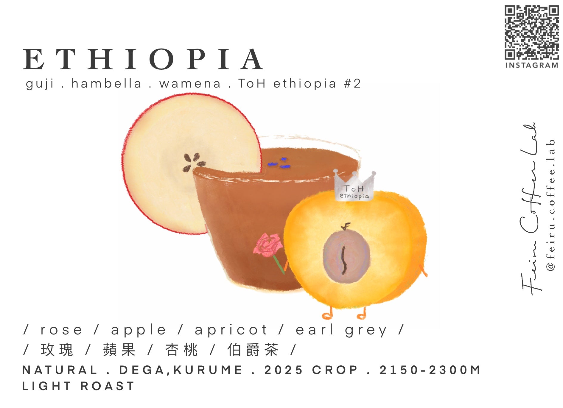 Ethiopia • ㅣ玫瑰ㅣ蘋果ㅣ杏桃ㅣ伯爵茶 ㅣ • Natural • Dega , Kurume